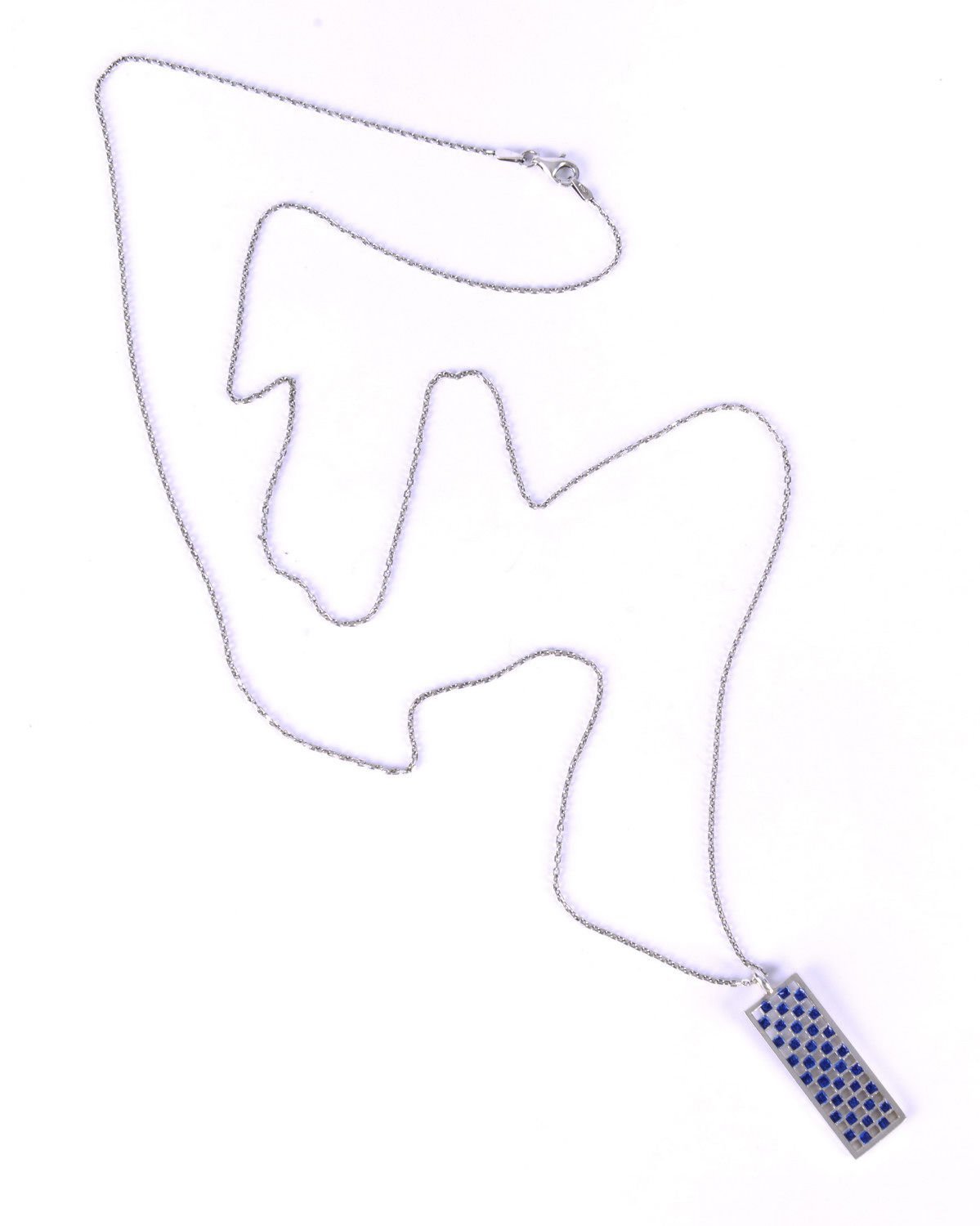 80 cm lik zincir ucunda 1 cm x 3 cm lik kafes model, içleri mineli 925 gümüş kolye.